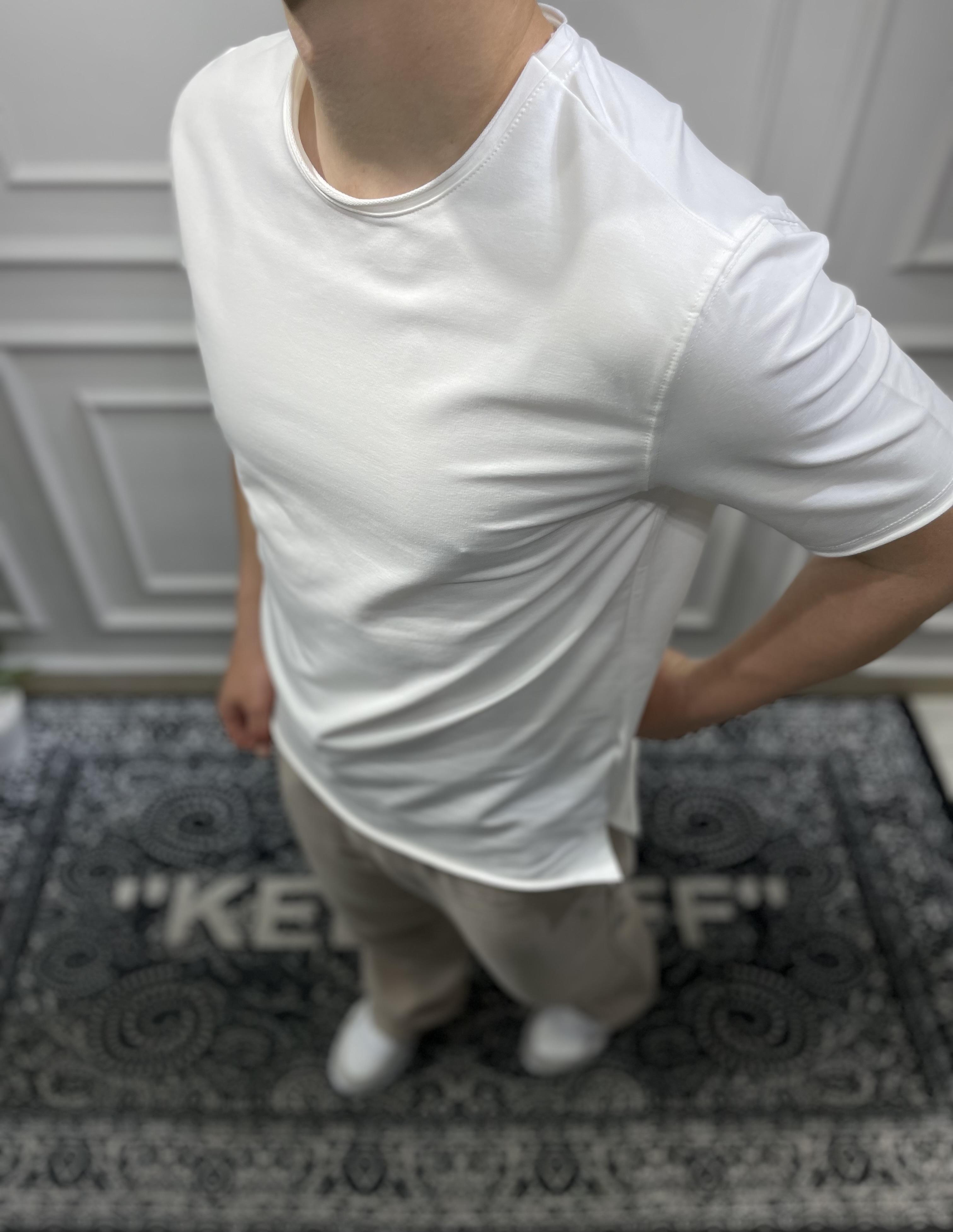 Yırtmaçlı Basic Oversize T-Shirt - Beyaz
